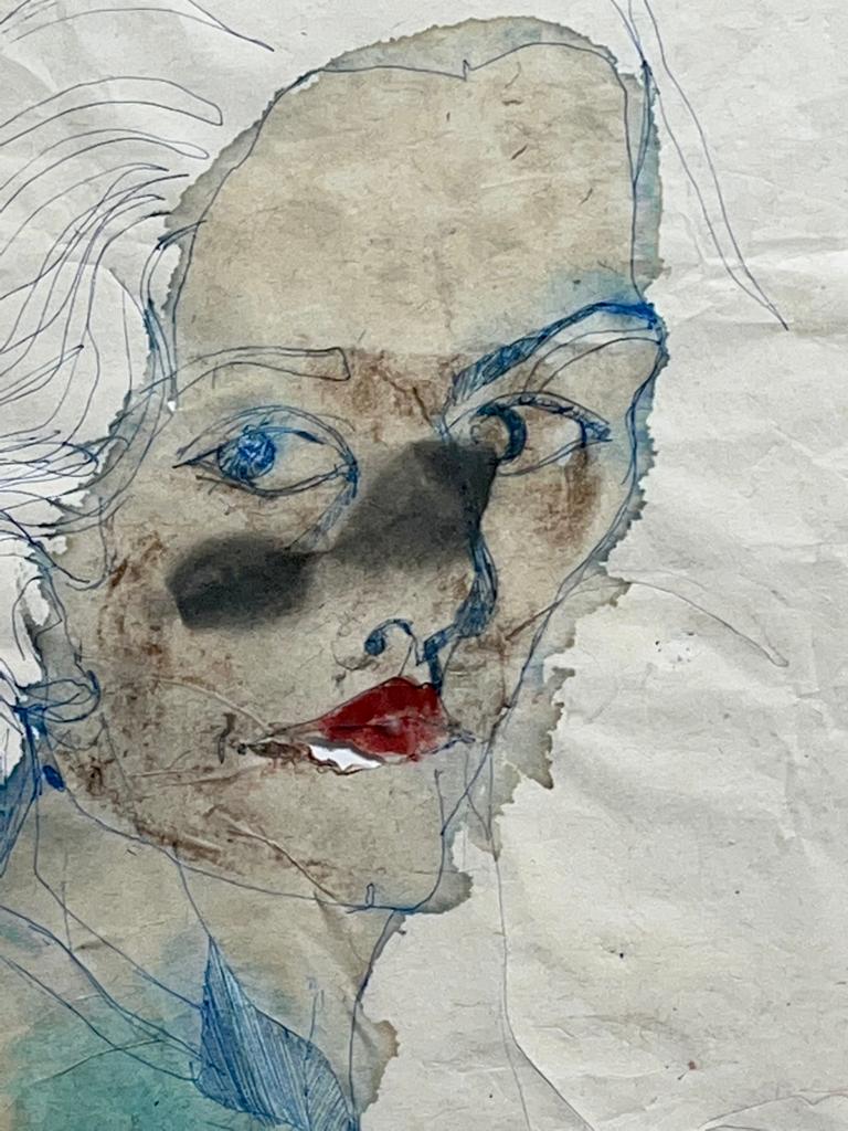 מפגש הכתמה ורישום מתרחש בעבודות “פעמונית” ו”מאטה הארי”, דיוקנאות נשים בהם כתמים מרהיבים וקווים כמעט נעלמים. הדמויות הן נשים ששמן נקשר לאגדות. פעמונית הוא שמה העברי המקובל של רפונזל מאגדות האחים גרים, שמכשפה כלאה בארמון והקשר היחיד שלה לעולם הוא דרך צמתה המשתלשלת מהמגדל שבו נכלאה. “מאטה הארי” היה שם הבמה של רקדנית ודוגמנית הולנדית שהורשעה בריגול לטובת גרמניה במלחמת העולם הראשונה, ספק אם בצדק, והוצאה להורג.