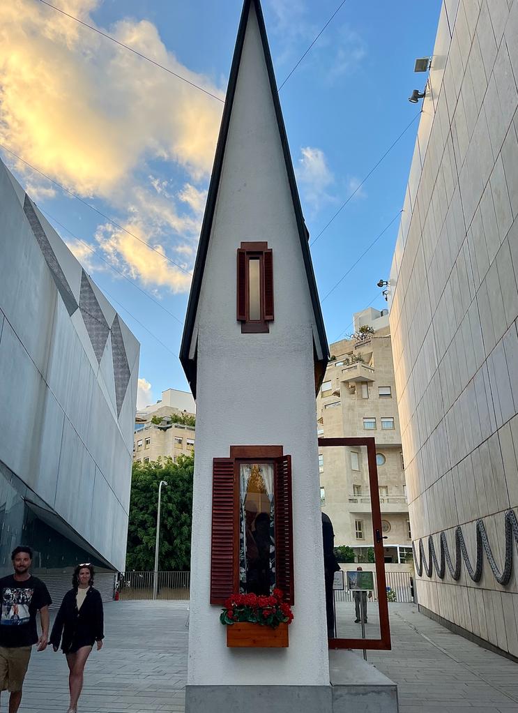 I first saw the “Narrow House” in Venice in 2011 in the garden of the Palazzo Cavalli Franchetti. The installation here, in the narrow courtyard between the Tel Aviv Museum’s Postmodern wing and Modern wing, is striking and the message became even stronger. The house, which seems to have been taken directly from a children’s fairytale, is as multilayered and complex as the stories. Sweetness becomes bitter as the compressed house brings up the horrifying history of the deeds perpetrated by residents of such cute houses and of Austria’s continued whitewashing of its history.