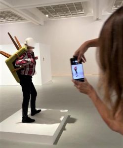Over the past two years the Tel Aviv Museum of Art has been re-formulating or at least expanding its “contract” with its audience. Wurm’s exhibition should be perceived as a continuation of a long list of exhibitions in which the audience is the motivating force or in an active interaction with the art. Thus it was in some of the works in the Yayoi Kusama retrospective (and definitely the installation A Bouquet of Love I Saw in the Universe (2021), the forest of sharp points in black and pink made especially for the Tel Aviv exhibition), Urs Fischer’s exhibition “Play,” which Lapidot also curated, in which office chairs moved through the gallery assisted by IA, and “communicated” with visitors. The project/exhibition curated by Ruti Direktor “Imagine Museum (or: The Body Remembers)” was an audience collaboration in most of the exhibits (as in the performances by Michal Samama, Batsheva Dance Company, Yasmin Godar and many others).