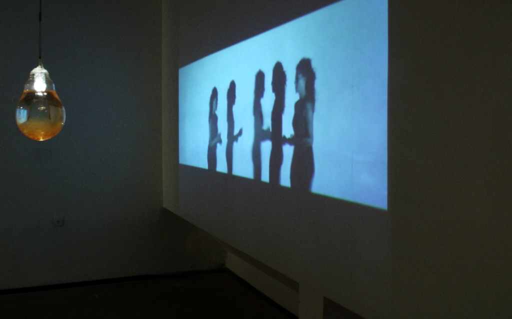 Woodpecker, a wooden box on which what seems like the silhouette of a cartoon bird. After a short time, it is associated to the rhythm of the silent video Triple Duet for One. Dancer Shani Ben-Haim was filmed dancing basic salsa steps, and once again dancing with her silhouette projected next to her again and again, transforming the solo into six figures. The work shows a split ego, resonating with the Buddhist koan, “What is the sound of one hand clapping?” Svirsky, who used to dance, equates presence, shadow and absence, speaking about the void as a situation of being.