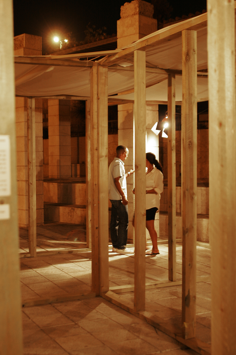 החלל – לא חלל המסומן בקורות עץמזכיר בהקשר היהודי סוכה על כל משמעויותיה כבית ארעי, תנועה והגירה של קירבה לטבע שמשמחת אך גם מזכירה עד כמה אנו נתונים לחסדיו. השירים והצילומים שיש בהם מכווה גדול של כאב נשארים בו חשופים ופגיעים.
