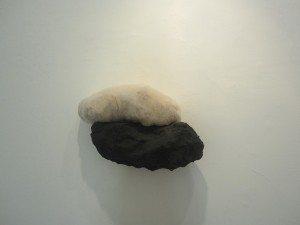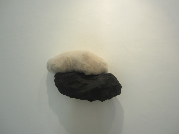 שמדובר בעבודות יפות עם הבנה דקה של מופשט ושל חומר ונדמה שגם עם השלמה של הדרך אותו עשתה האמנות מאמונה כמעט עיוורת במופשט כ”כקידמה” לדו קיום וגם זליגה של מופשט לנרטיבי ולהפך. הרבה מקום לדימיון יש בענני החומר הבולטים מהקיר, עם מצמר פלדה או צבע וגבס שנדמים כבד מתוח על קונסטרוקציה. פסל מחווה למירית כהן, אמנית מצוינת שהתאבדה ב 1990 (לפני כשנה הוצגה תערוכה משובחת מעבודתה ב”גורדון”) נע בין התייחסות לעבודותיה לזר הקוצים של ישו והוא מרשים וגם נוגע ללב . איכות לא תמיד, והרבה פעמים איננה, זהה לחדשנות.