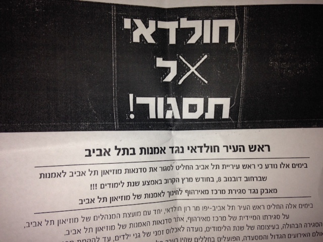 The recent decision by the Tel Aviv-Yafo Municipality to close the Meyerhoff Center for Art Education of the Tel Aviv Museum of Art, is a perfect example of an instrumental view of art (and artists). The surprise announcement gave only a three month notice without offering an alternative site – in the middle of the school year. The studios have been operating in a former school building since 1986, and host more than 2,200 students, taught by dozens of artists. The Municipality wants to take back the structure to use for kindergartens.