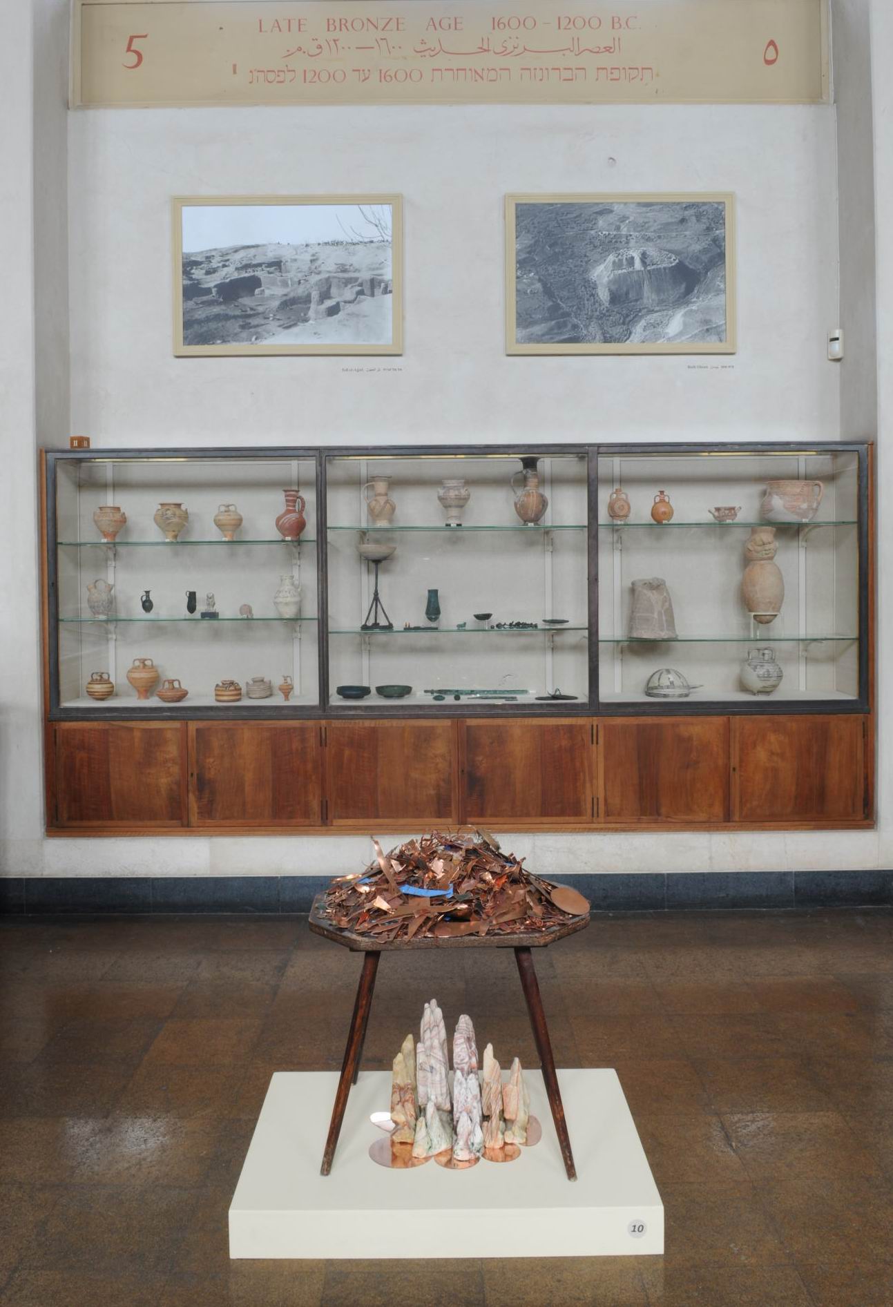 אבי סבח מציג ערמת גזירי נחושת בצורות שונות , בעיקר סכינים שנראים כערמה של אובייקטים שטרם מוינו וקוטלגו לעומת המימצאים הארכאולוגים הסדורים , ואיתן בן-משה יצר בחדר שירות צדדי של המוזיאון, מה שנראה כברכה מנצנצת וגם דוחה כאילו הכילה סוד שממשיך לבעבע במקום הסטטי כביכול .עבודות של ראובן ישראל על הגימור המבריק והחלק וצורותיו האניגמטיות יוצרות דיאלוג אסטטי מעניין עם האמנות המיצרית לידה הוא מוצב . עבודות הוידיאו אינן זרות להקשר באופן כזה שנדמה שניתן היה לוותר עליהן (למרות שאחדות כמו של דניאל קיצ’לס או ניר עברון טובות) .