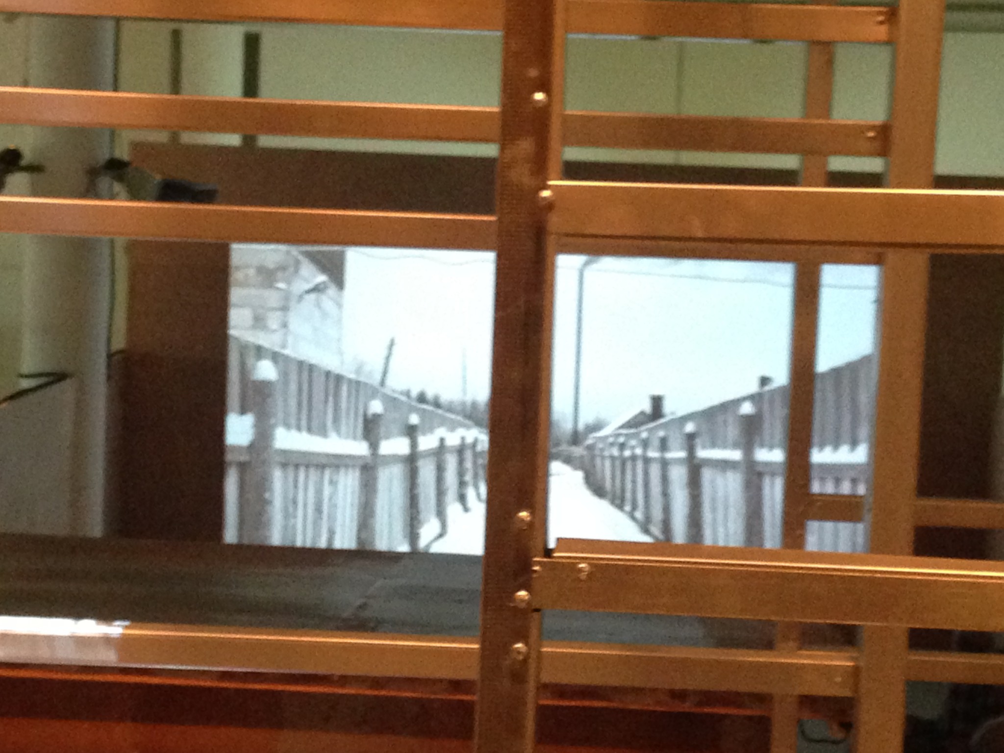 מעניינת במיוחד הכניסה, צריף סוהרים בו מובהר לצופים שהם נכנסים לאזור מנוטר וספריה ובה עמוס קלסרים ובהם רישומים, רבים מהם טובים מאד של טאטי. העבודה הזו היא דיון בזיכרון, בשבירות שלו ובאינטרסים אותם זיכרון, גם זיכרון קרוב יחסית, משרת.