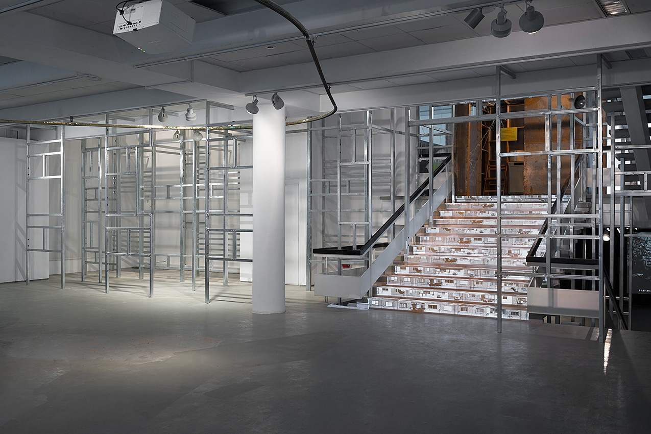 Dalit Sharon constructed her impressive Machine for Living (Le Corbusier’s controversial concept) on the stairwell, using metal profiles, while videos of Israeli mass housing projects are screened on the stairs.