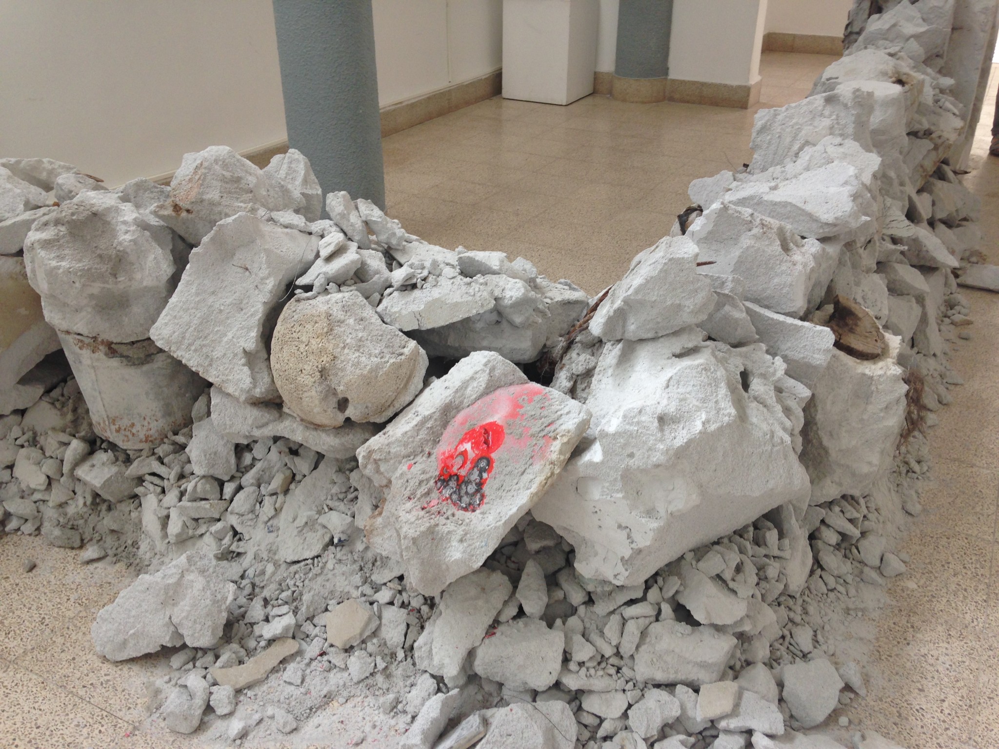 Viewing the end of a process exhibition is retrospective wisdom. It intensified the apocalyptic aspect of the show. Tabernacle,(Heb., mishkan)refers not only to the name of the museum but also enfolds the history of Jewish ritual worship – from the Mishkan as Tent of Meeting, Tabernacle of Shiloh and finally King Solomon’s Temple built to replace it. In the art actions the large blocks were broken to bits, alluding to iconoclasm (ancient and modern, as ISIS films show the reduction of ancient historical cities to rubble).