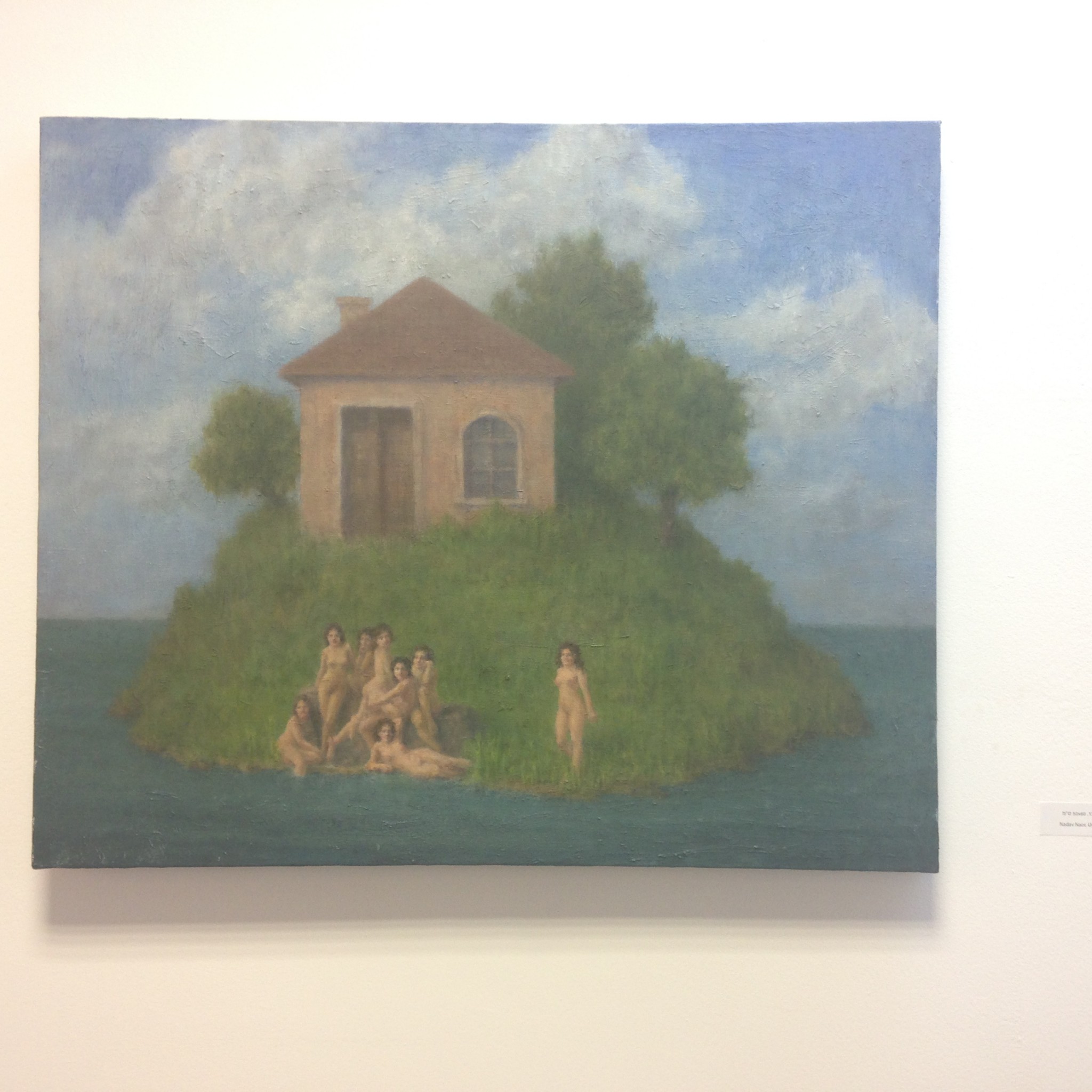 Naor’s islands with a single structure on them are atemporal and ahistorical, bearing memories and western utopian thought in an absurd encounter between landscape painting and Surrealism à la Magritte. Naor’s wonderful light touch with color, transparency and brushwork has been replaced by opacity, making the works simplistic, lacking in power. Naor’s previous works are so good they make one wonder about the new works exhibited here. I wait to see his future paintings.