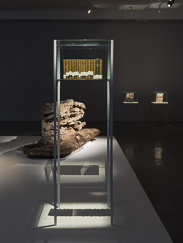 Infinite associations arise from Bibliologia. It is one of those rare exhibitions that can be a source of dreams, in which the exhibition spaces are clusters of meanings, with pathways for wandering through which lead to discoveries and new insights. It comprises the pleasure that bibliophiles feel upon entering libraries and bookstores, and the special feeling of visiting a foreign language bookstore. The sensuousness of the physical book, the elusive quality of “book-ness” is distilled and transformed into the main element of this exhibition, making it, at times. more important than the book’s contents.