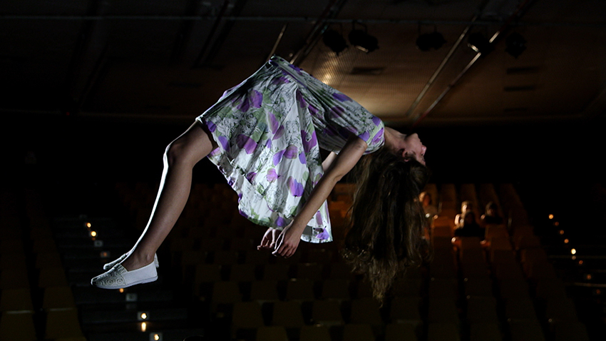 In The Flying Girl, an expert on music and hypnosis (Dalit Matityahu) lectures on the suggestive impact of Mediterranean music, with a live demonstration of a woman hovering in an hypnotic trance. The situation is reminiscent of 19th century “scientific” evenings featuring hypnosis. The scene suggests magicians’ performances touching on dimensions beyond the senses. Mediterranean music represents art at large.