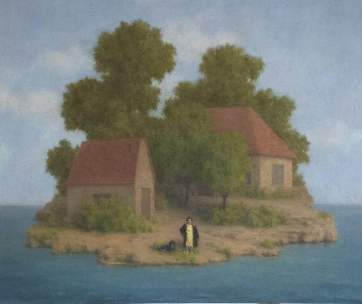 המפגש בין היצירות של יוסל ברגנר ואלו של נדב נאור בתערוכה “אי שם” נסב על אנשים ובתים, דימויי יסוד אוניברסאליים: דימוי הדמות האנושית ודימויי המחסה, המפלט, המבצר, הבית,שבשם השמירה עליו לחמו כבר אינסוף מלחמות.