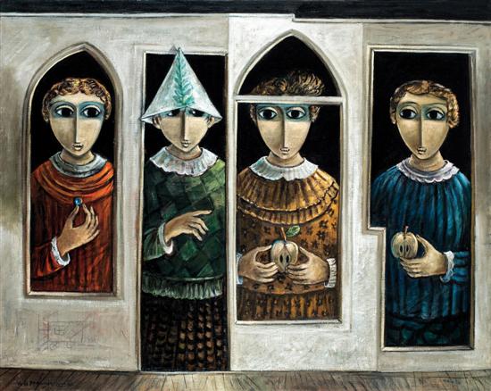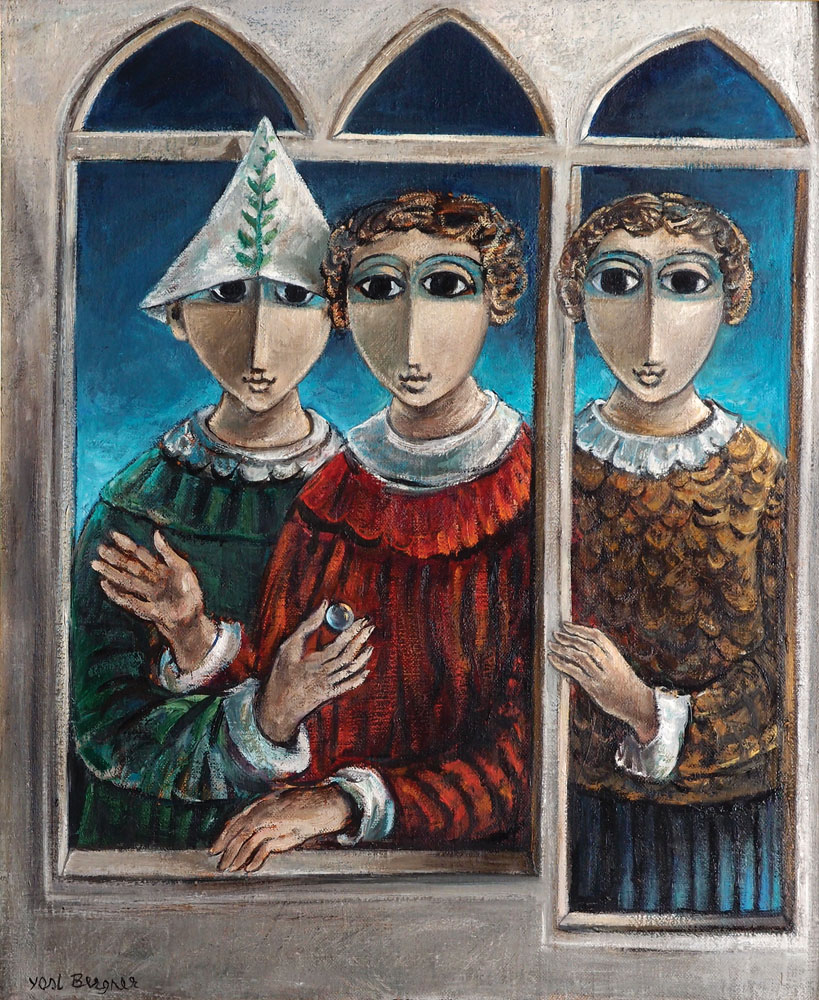 When the Gordon Gallery asked me to compose a text for the joint exhibition by Yosl Bergner and Nadav Naor, I hesitated before consenting. This was an entirely unexpected pairing for me. I had been following Naor’s development over the past decade, with his critical contemplation of the basic values that became fixed in our consciousness: individualism, belonging, and possession.I had never written about Bergner’s works. The works in this exhibition dating from the 1950s through the ‘70s show an evident similarity to works by Modigliani, Chagall, and Picasso. Reading Bergner’s works alongside of Naor’s contemporary works and focused on motifs of figures and habitats provided and opportunity for a fresh examination.