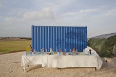 לצד עשרה צילומים של משטחי אגרוף המקיפים את הצופים במעגל אלימות מחניק מוצג תצלום שולחן ערוך במה שאפשר לתאר כקלישאה של כיבוד באירועים ציבוריים ממלכתיים, על בקבוקי הפלסטיק וצלחות המאפים; תפנים חלל בית שקירותיו לא סוידו ועל רצפתו שטיח; וגזע עץ הניצב באמצע שביל סלול.