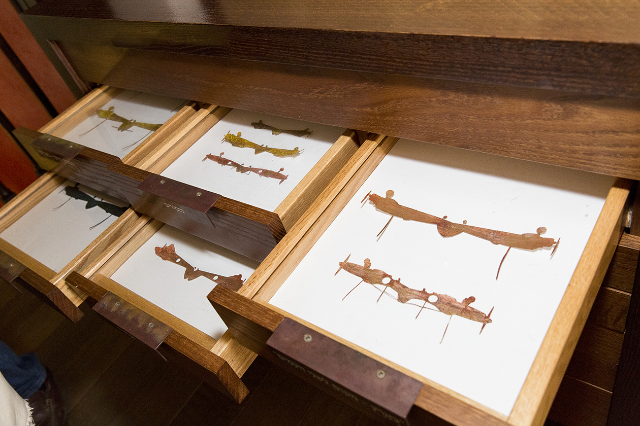 Rotem Ritov’s “butterflies” are arranged and placed in drawers and boxes, evoking the act of taking ownership over nature that characterized the West’s colonialism, in which until just a few decades ago, collecting and killing butterflies was thought to be an expression of love of nature. But what seems from a distance to be a row of impaled butterflies reveals itself up close as weapons, rows of tanks cut out of metal. In his essay, Bialik had already expanded upon the concepts of property, jealousy and ownership and their embedded violence.