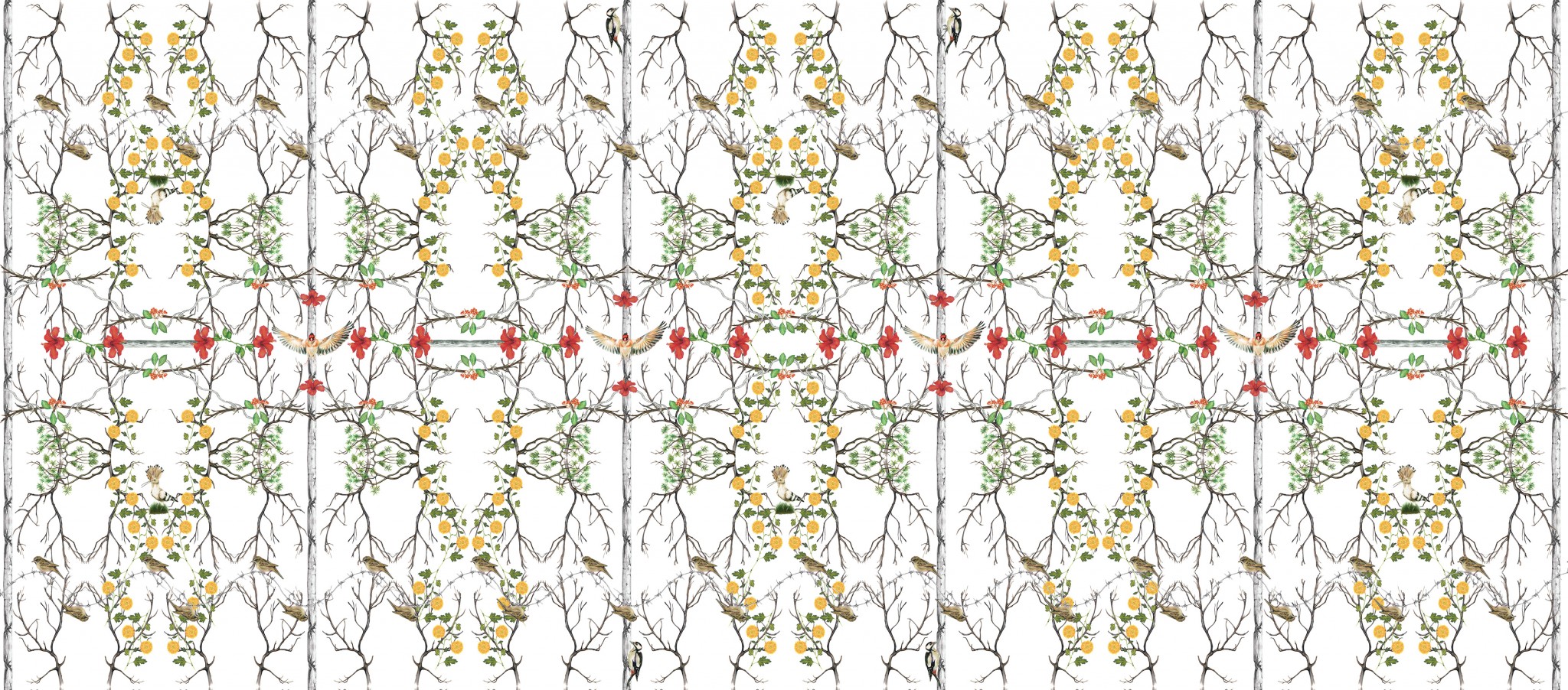 במעלה המדרגות לקומה השניה ,המפוארת של בית האמנים , כמעט ממש מעל הקיר התחתון המינמליסטי של גרשוני משתרע קיר טאפט נהדר וציבעוני , המיצב “ארץ הישימון ” 2016 ,של ויק יעקובסון–פריד. על רקע הטאפט העשוי עיבודים דיגיטליים של רישומי פלורה ופאונה תלויים שלושה רישומים בעיפרון וגרפיט על נייר של אתרים בירושלים המקבלים הקשר מאיים וסוראליסטי. המרחק בין העבודות מסמן תנועה וקריאה והכרה בתעתוע שיוצרת המציאות ומהדהדת באמנות. סידרת העבודות של גרשוני ניראית חדה כאיזמל , מכילה התיחסות ליחסי שליטה, לקולוניאליזם וגזענות לא פחות מאשר לשאלות האינדוסינקרטיות של אמנות. למרות זאת העבודה של יעקובסון–פריד על שפתה הויקטוראנית אינה ניגוד. תוך נתינת דרור ליופי היא פורשת עולם משמעות אסוסואיטיבי של צמחים וציפורים ועליו ,כמו חלונות למציאות מאיימת, הרישומים הזהירים של פרטים אדריכליים בירושלים שהפכה לישימון בו חיור בר סובבות בדרכי עולי הרגל. בין עושר הטאפט והבטחתו השברירית לדשנות ושובע להתרסה של הנייר הקרוע והתקווה המכזיבה שיצר לשינוי, המעגל סובב.
