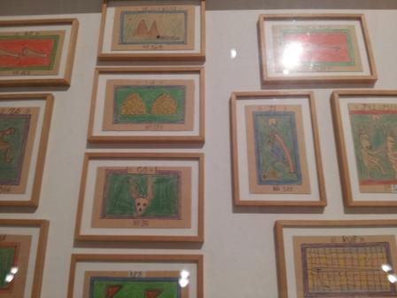 בסדרת הרישומים של האמן יליד 1923 Frédéric Bruly Bouabré מחוף השנהב החלה ב 1982 תחת הכותרת “ידע העולם” והוא ממשיך בה עד היום. Bruly Bouabré המציא דת משלו וגם כתב סימנים לשפה כמעט נכחדת שייך לדור האמנים האפריקאי הראשון שזכה להכרה אמנותית במערב בתערוכה החשובה “Magiciens de la Terre” שנערכה בפומפידו בפריז ב 1989. הרישומים הקטנים, הצבעונים, שתופסים רגעי זמן ורסיסי מחשבה מוצגים לא רחוק מסדרת הקומיקס של ספר בראשית שיצר R. Crumb ב 2009 ובו מאייר בפרוט מיתוס הבריאה המערבי הבסיסי.