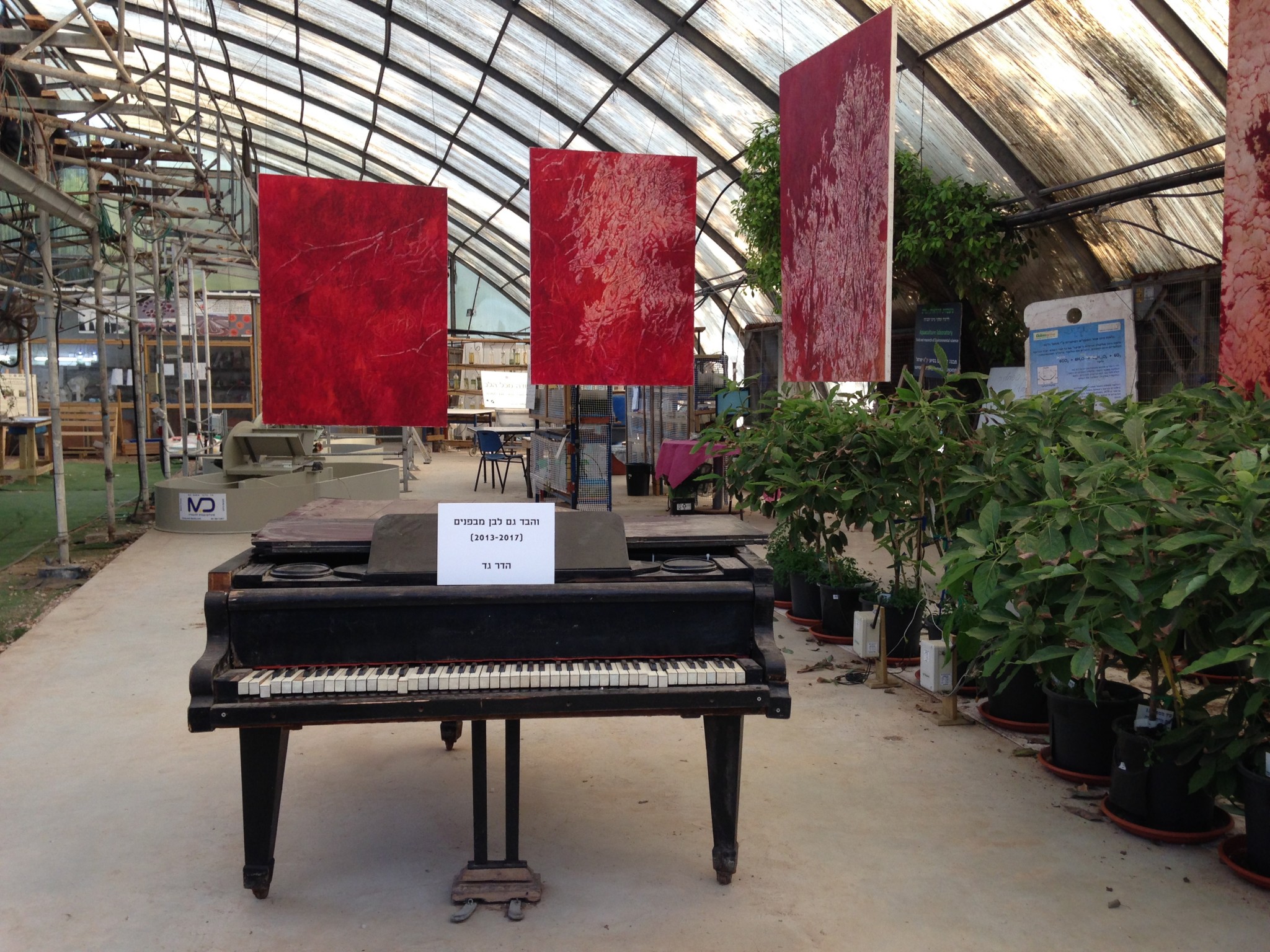 בארוע היו עבודות מצוינות בהן ” והבד לבן גם מבפנים”, סדרת עבודות לוהבת באדום של הדר גד שתלו בתוך החממה החינוכית