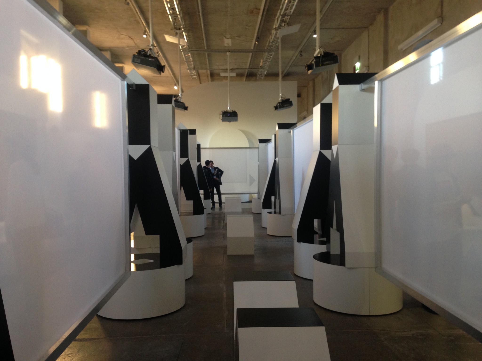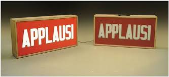 בכניסה לאולם ההקרנות הציב ויזולי עבודה של Gianni Pettena גיאני פטנה מ 1968 המורכבת משני שלטים מהבהבים עליהם כתוב “Applausi” מחיאות כפיים ושימשו בתוכניות טלויזיה לכוונת קהל באולם. מעבר לרעננות הויזואלית של העבודה המצוינת, גם המרירות שבה נותרה טריה .