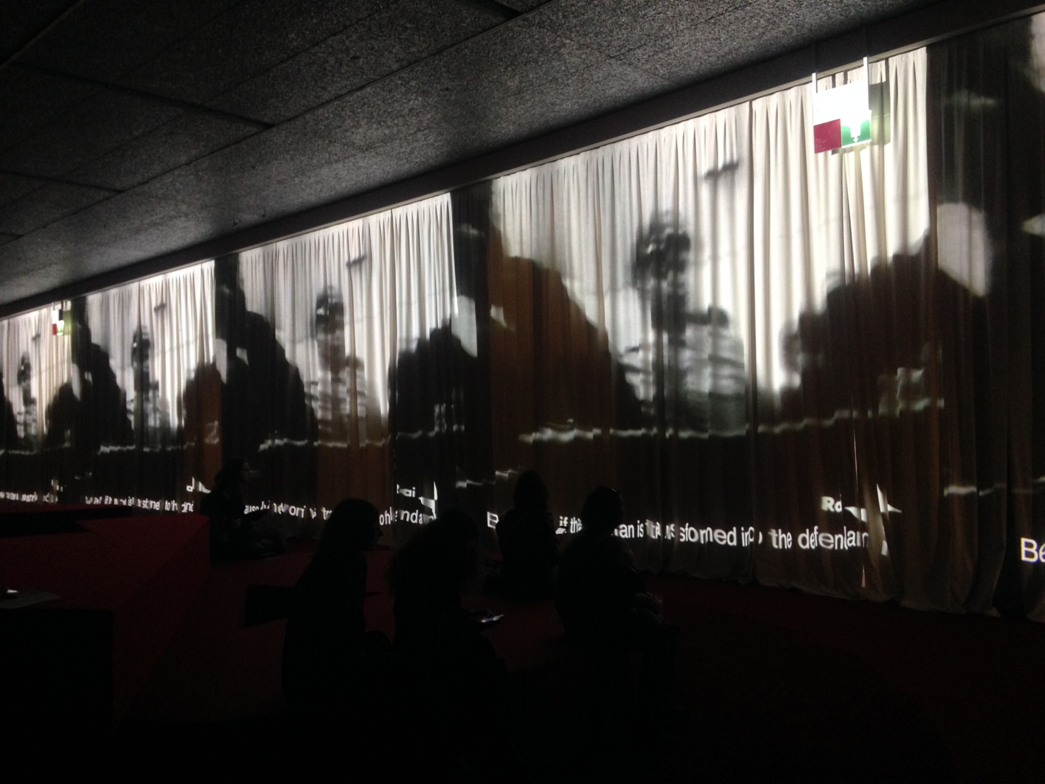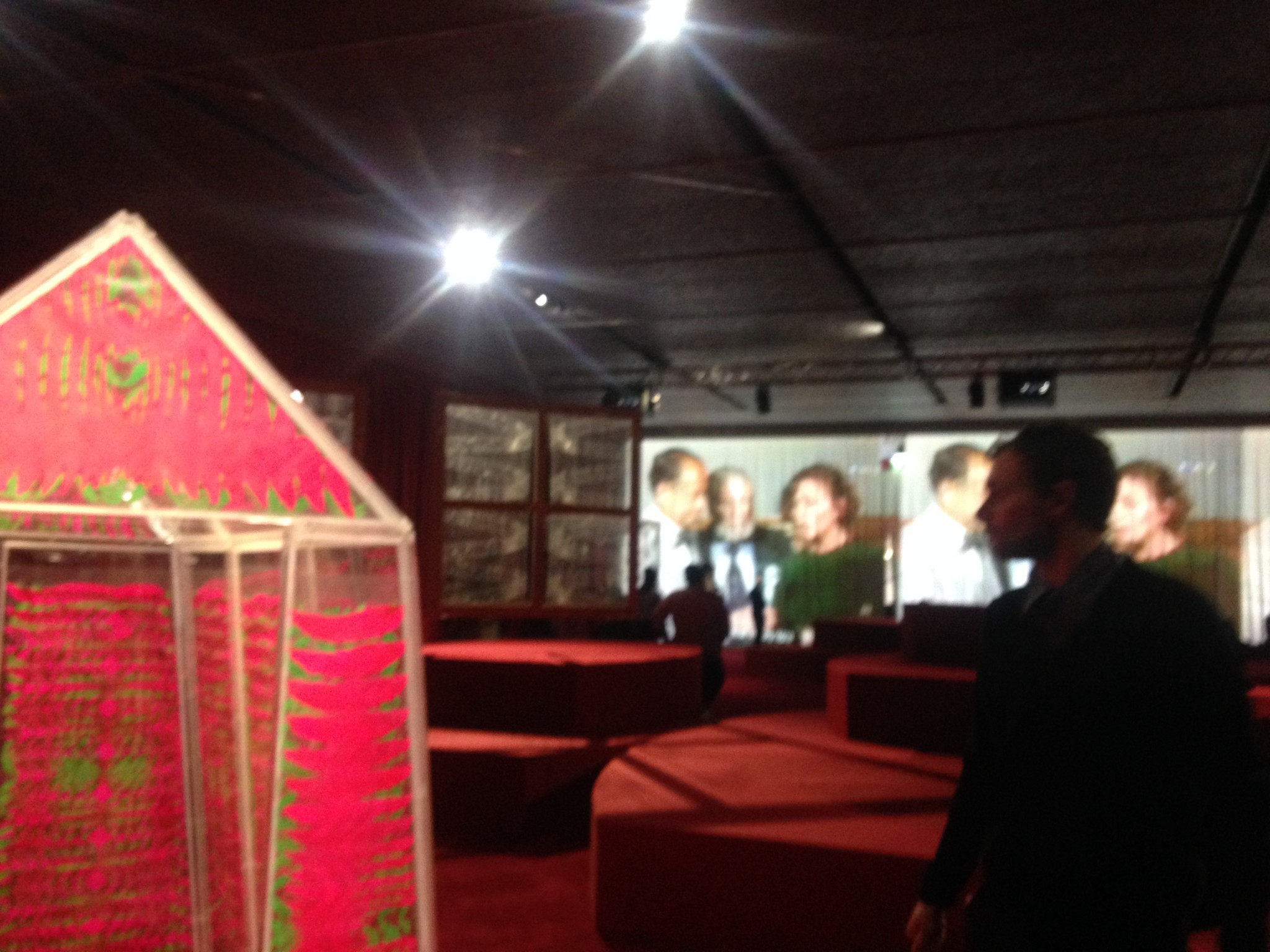 באולם נוסף מוקרנים על וילון ענק קטעי חדשות העוסקיםבפמניזן בעיקרבדיון האיטלקי הער בזכות נשים על גופן בהקשר להפלות . הצופים נכנסים ויוצאים לאולם מבעדלויון כך שיש צנועה והפרעה מתמדת בהקרנהעצמה, כמו חדירה ויציאה סימבולית מגוף שהוא ההקרנה עצמה . הצופים יושבים על גופים אדריכליים מצופים שטיחים אדומים באדום דם בחלל ענק שפזורים בו גופי פיסול בפלסטיק ופיברגלס.