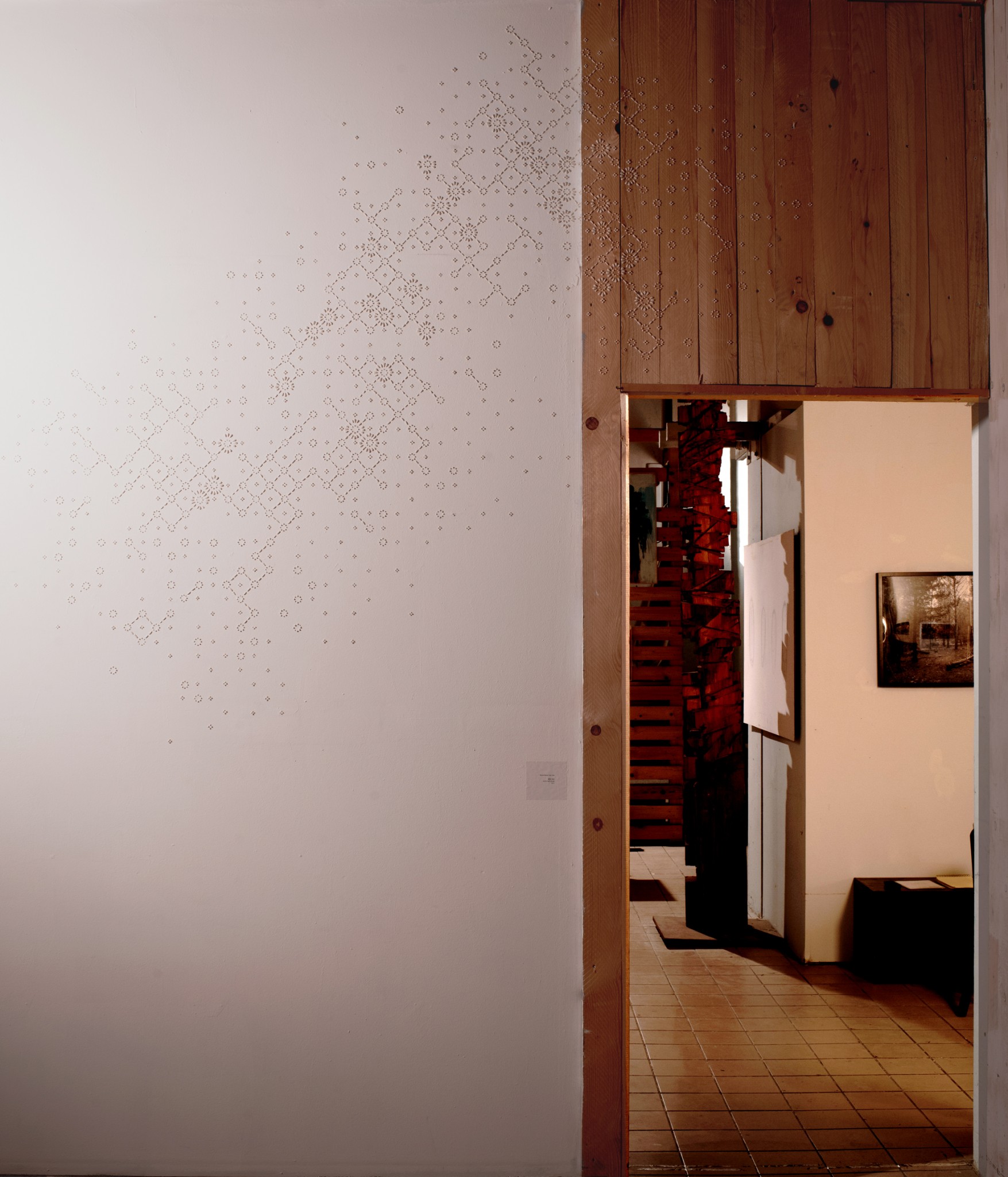 ב SE4 1AJ תמר בנאי עוקבת גם אחרי תחושה דקה,שברירית בעבודה העשויה חתיכות קטנות של קרמיקה שעל קיר ומשטח עץ יוצרות את מה שנדמה כשרידים של דגם שלם שנשחק, נמחה , נאכל בשיני הזמן. זו עבודה עדינה כמעט נעלמת כמו שבלונה מתגלה על קיר של בית ליפול.
