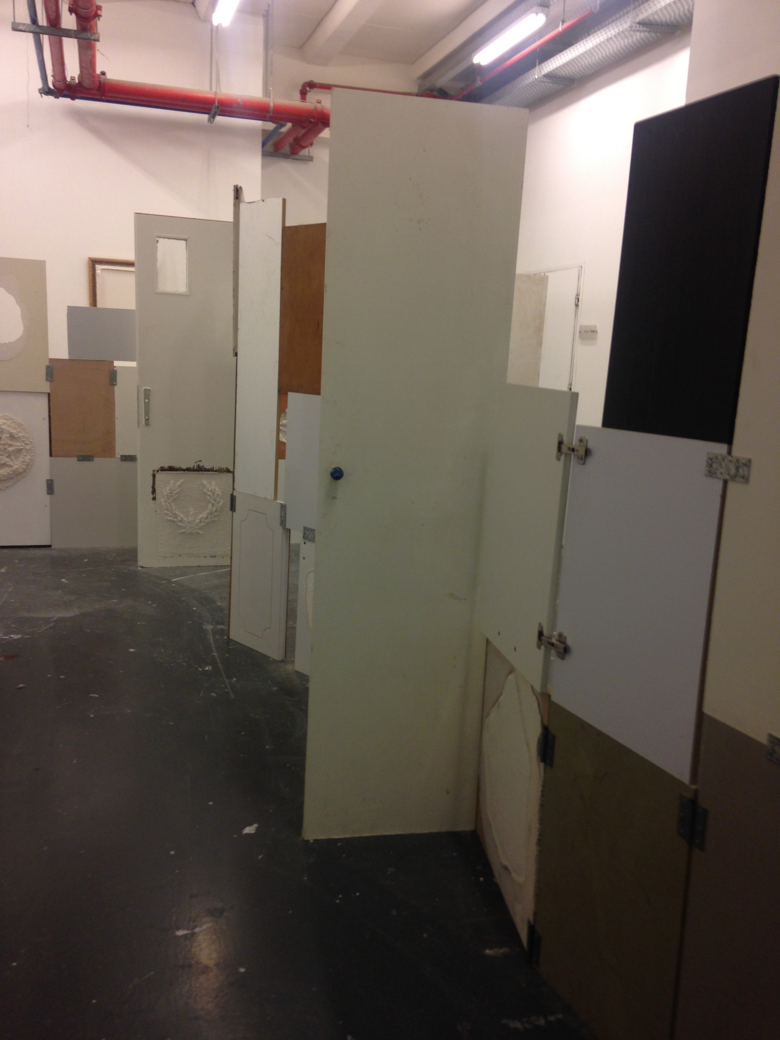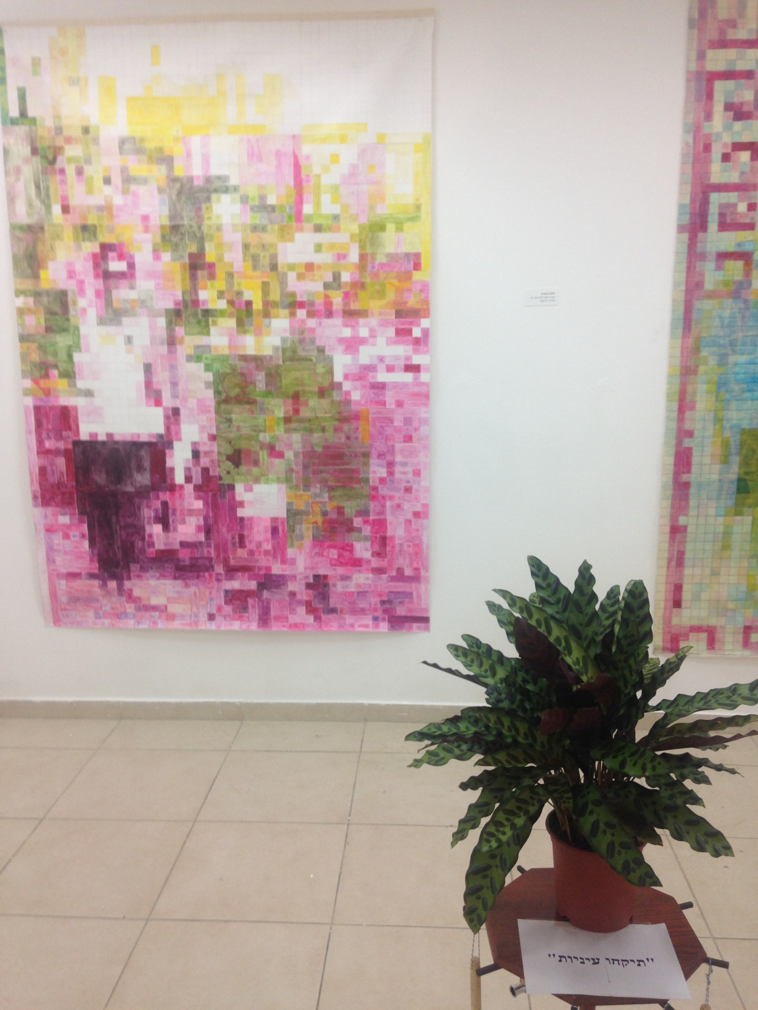 בין העבודות הבולטות “זיכרון” מיצב ציור של אליסה ליסוב. העבודה מבוססת על תצלומים של ההגעה לארץ של האמנית ומשפחתה מקזחסטן בשנות ה 90 ובכך היא חלק מהעיסוק בזהות והגירה , אך מעבר לכך היא גם היגד על התבוננות . העבודות הדו מימדיות הן דימויים צילומיים מפורקים הנראים כהכנה לאריגת שטיח או רקימת גובלן. במרכז החלל שולחן צד ועליו עציץ, כהתגלמות הכמיהה לביתיות, וסביבו תלויות עיניות של דלתות המורכבות על ידיות (כך שהן מזכירות מכשיר רפואי להתבוננות).