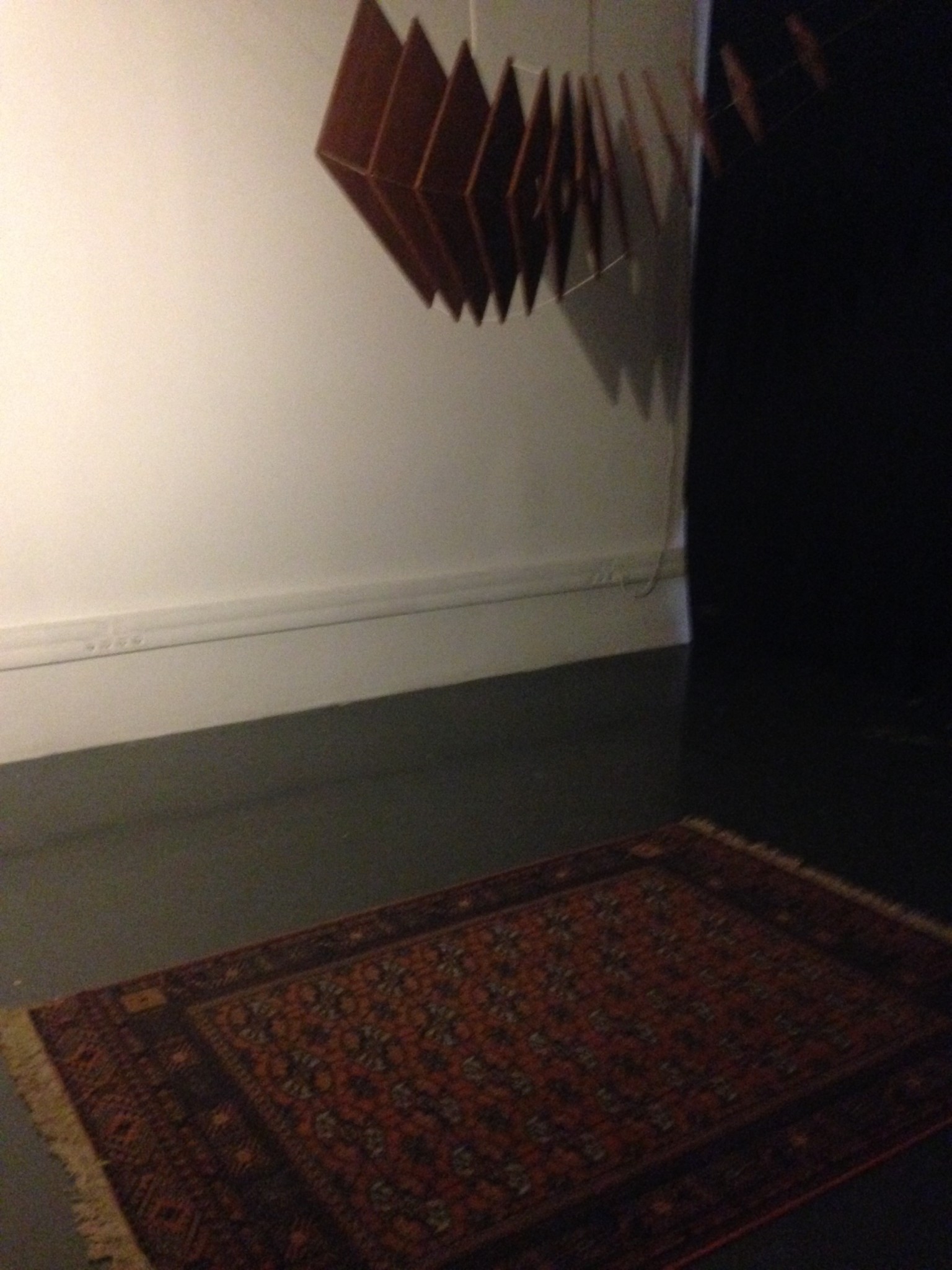 המיצב פיסול והקרנת וידיאו של אלי כהן “אנטינומיה” מבטיח גם הוא. חלקו הראשון, המורכב משטיח ועליו גוף אבסטרקטי (שאפשר לראות בו רמז למצלמה נוסח המאה ה19) הוא מהיפים והצלולים בתערוכה. היחס בין הגוף לשטיח, שני סוגים של אבסטרקט, שתי השקפות עולם המתמצות בחפץ מוצלח במיוחד.