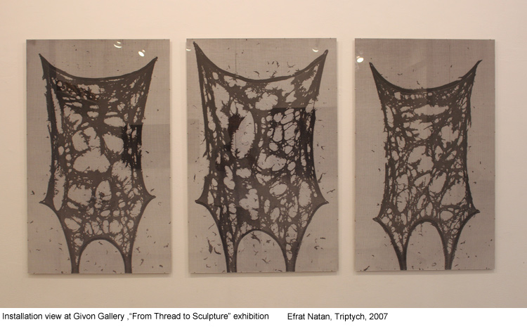 עבודות הריקמה של מריק לכנר שוקקות במפלצות כאב וגעגוע . המדיה בו הן עשויות היא בבחינת ויכוח עם הגמוניות העבר שדנו ריקמה ועבודות גובלן למינהן לגלות מהזרם המרכזי למחוזות הטעם הרע והנחות. לכנר בוחן בהם התנהגות של קו וכתם שממשכים את העולם הדשן והזר שמאכלס את ציוריו כבר שנים. העבודות המתיחסות ומשתמשות בחומריות של טקסטיל מקבלות הקשר מעניין כשהן ליד עבודות של של אפרת נתן שצמחה בלב קונצזוס הטעם הישראלי. טריפטיכון של שלוש גופייות “סבא”קרועות -מתפוררות של נתן, גופיות שדובר רבות על היותן מייצגות את הגבריות הישראלית, הקיבוצניקית, של שרירים ועבודה, נפגשות עם הרקמות של לכנר, המהגר הנצחי, הלא מתערה, ברגישויות של פרימה ופגיעות.