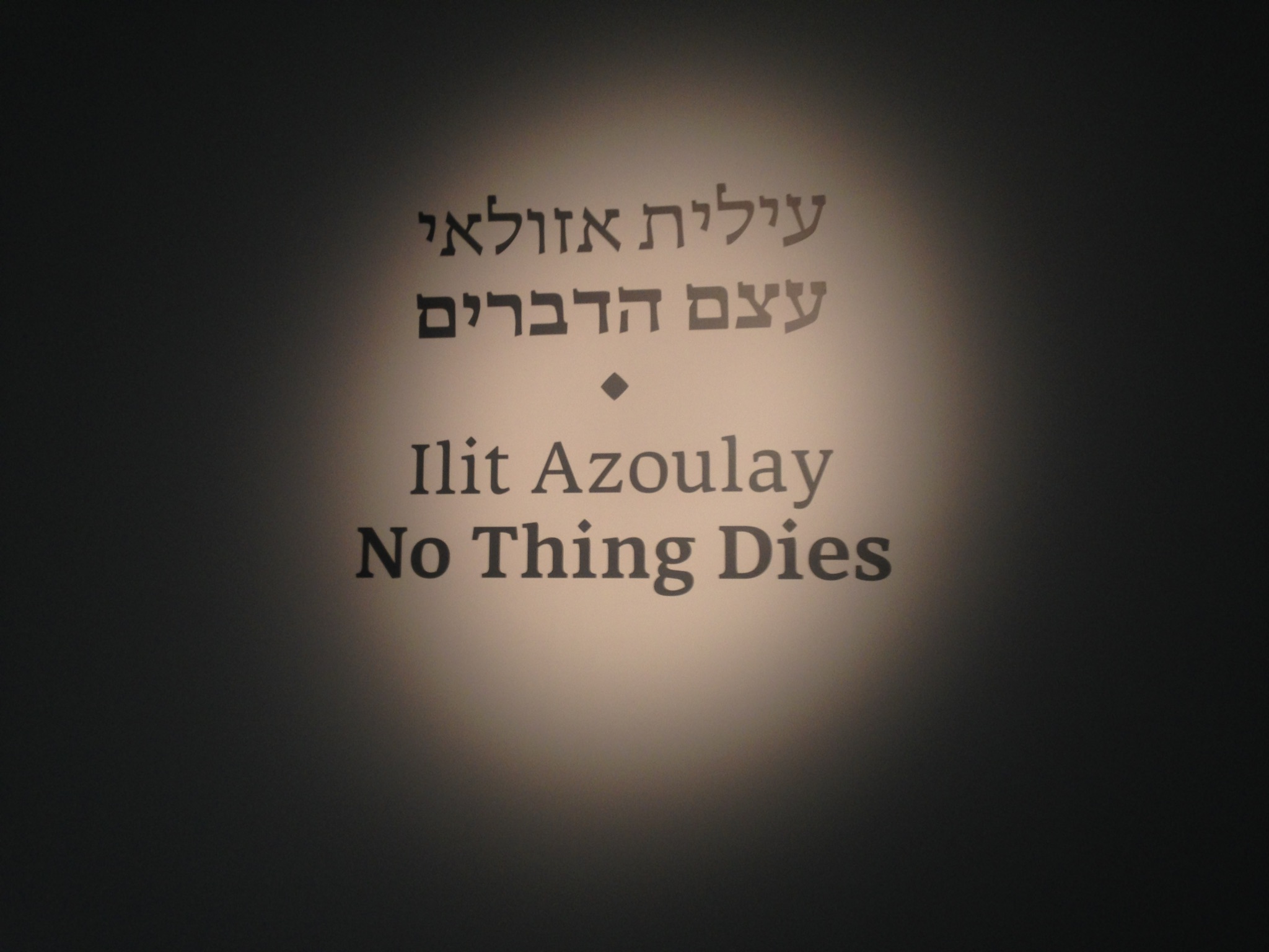 התערוכה של עילית אזולאי היא כישלון מפואר: תערוכה מעוצבת בקפידה, עבודות עתירות עלי זהב וארשת אינטלקטואלית שמותירה את הצופים מרוחקים ומנותקים מהעבודות . עצם הדברים מסתמכת, כך נכתב בטקסט הנלווה, על שלוש שנות מחקר אינטנסיבי של האמנית ואסיסטנטים באוסף המוזיאון וארכיוניו. למרות זאת, במקום להעמיק, לדלות ולחדד רגישויות, היא משטיחה עבודות וחפצים ממקורות מגוונים לבליל אחיד ,ציבעוני, בוהק ורדוד. השימוש הליברלי בזהב והשימוש בתאורה המאירה את העבודות כמו שרידי קדוש מנסים, לשווא, לשוות לעבודות הילה, אותה הילה שמאז האיר וולטר בנימין את אובדנה ב”עידן השיעתוק” העיסוק בה אינו שוכך . התערוכה מלווה בטקסטים רבים אותם מקריא נועם גל, האוצר באוזניות העומדות לרשות