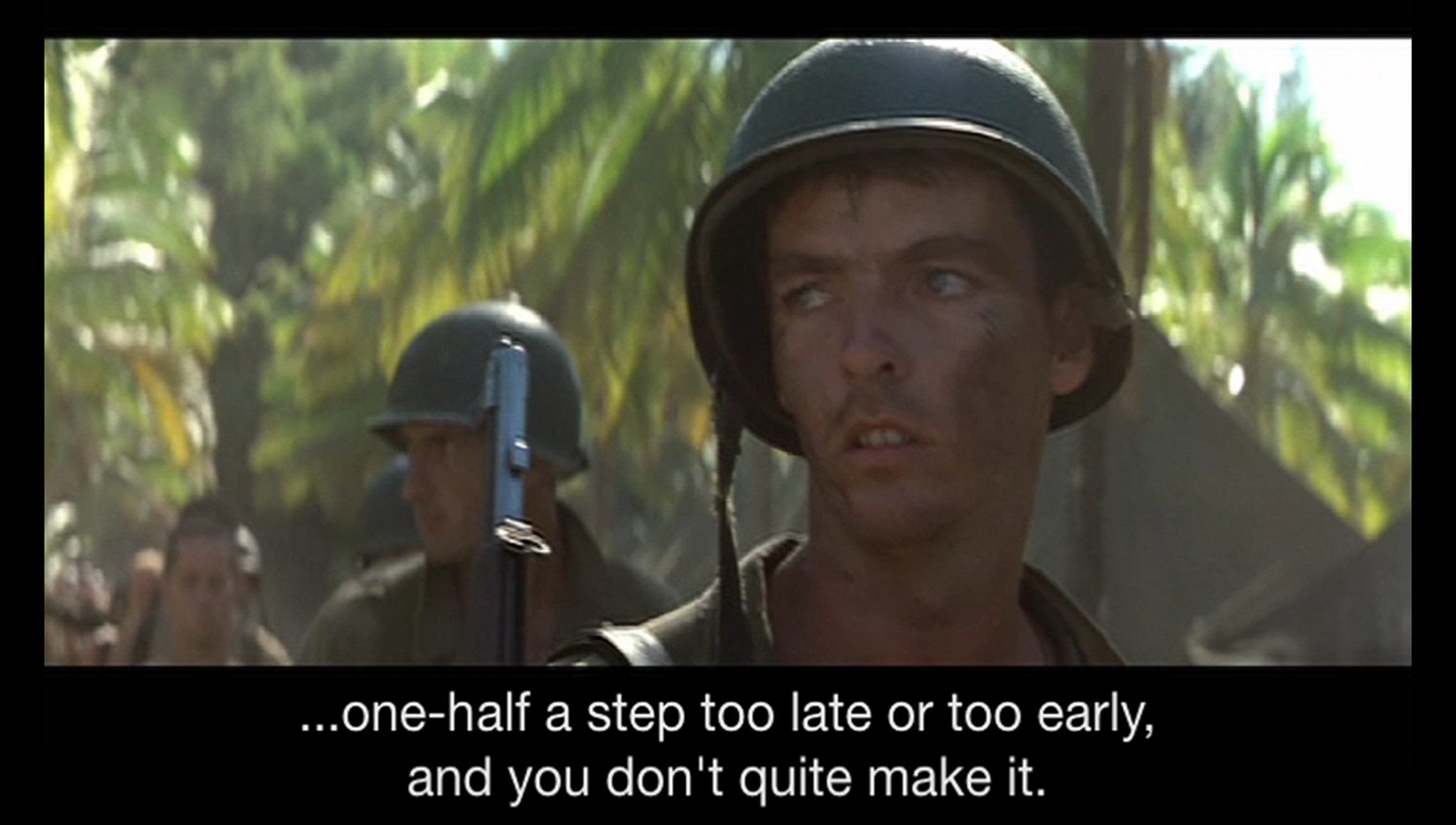 All footage taken from The Thin Red Line, Terrence Malick, USA, 1998 and pre-game speech from Any Given Sunday, Oliver Stone, USA, 1999