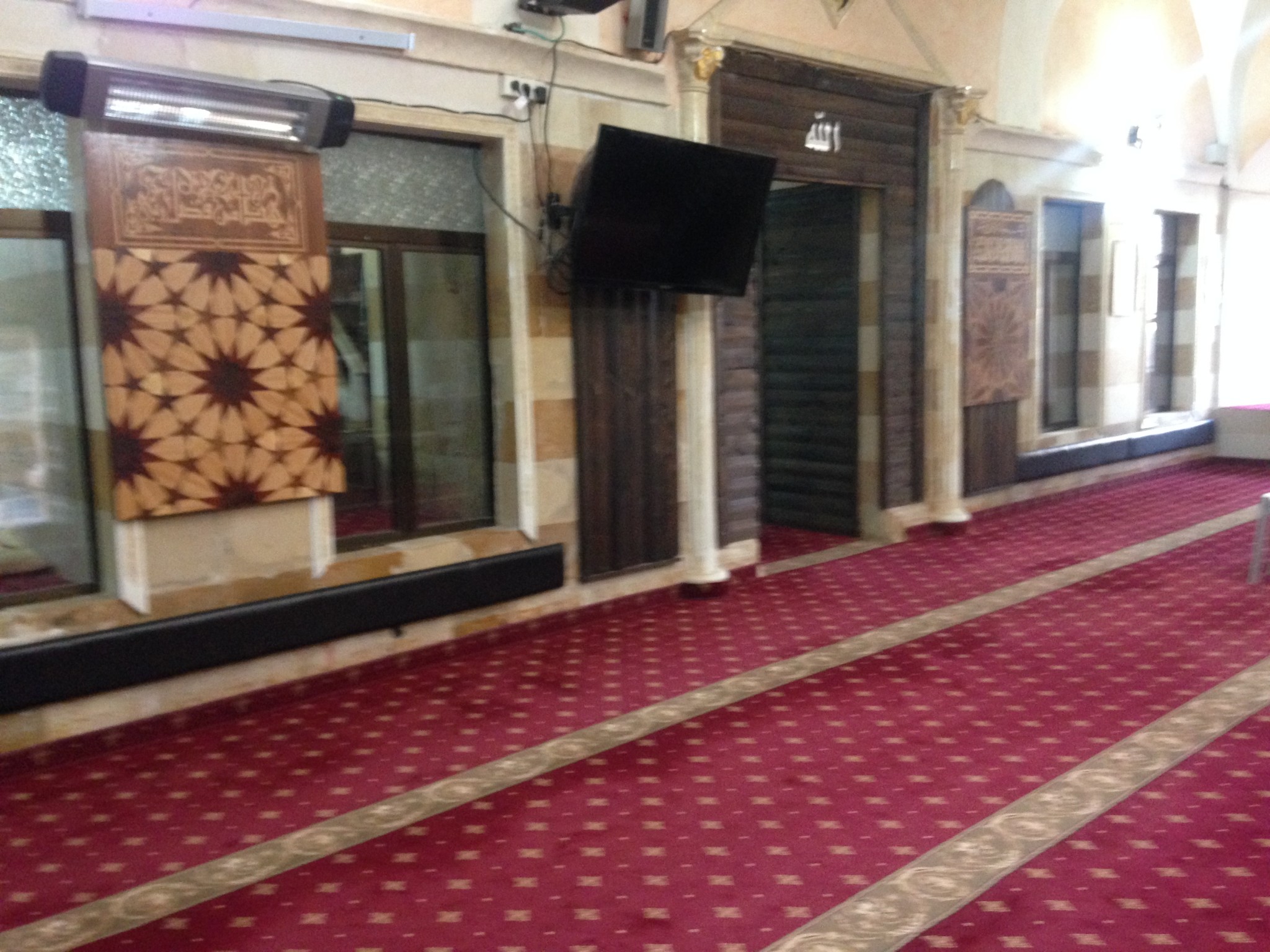 צילומי חיילות של אנג’ליקה שר במשרד עורכי דין, עבודות של משה גרשוני וגונתר פרוג במוסכים , ווידיאו של אלמגרין ודרגסט (אוצרי הביאנלה שנסגרה לאחרונה באיסטנבול ,ומי שהציגו תערוכת יחיד גדולה במוזיאון תל אביב ) במסעדה, הם רגעים- אנקדוטות. המעניין ביותר הן העבודות המוצבות במסגד , פעיל, בדיר חנא. ליד הדפס עבודת פרפרים של דמיאן הרסט (עבודות מקוממות בשל השימוש הנפשע שנעשה בעבודות המקור בפרפרים חיים ) המתיחסת לחלונות הרוזטה של כנסיות, מוצגות עבודות עץ העוסקות בדגמי ערבסק של מוחמד קאליש, וציורים של משה קופפרמן שאבסטרקט הקודר שלהם מסתתר נרטיב כאב, צרוף כמעט אבסורדי של זיכרונות וזמנים, דתות וכמיהות.