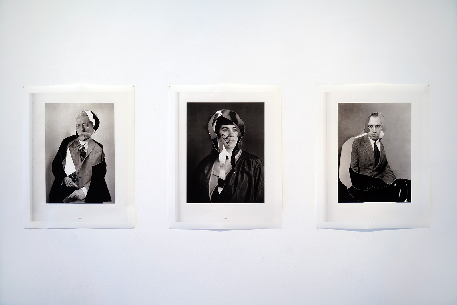 In her book On Photography, Susan Sontag described Sander as having photographed individuals as if they were wearing a social mask. Although he was not a racist (and his work was banned by the Nazis), classifying human beings into “types” is associated with theories of race prevalent in the late 19th and early 20th century, and specifically to eugenics and physiognomy. By cutting and tearing the images, Shaham disrupts stereotypical and catalogued identities to form hybrids arising from the depths of the cut papers; these are entities whose forms have not yet taken on their final shape.
