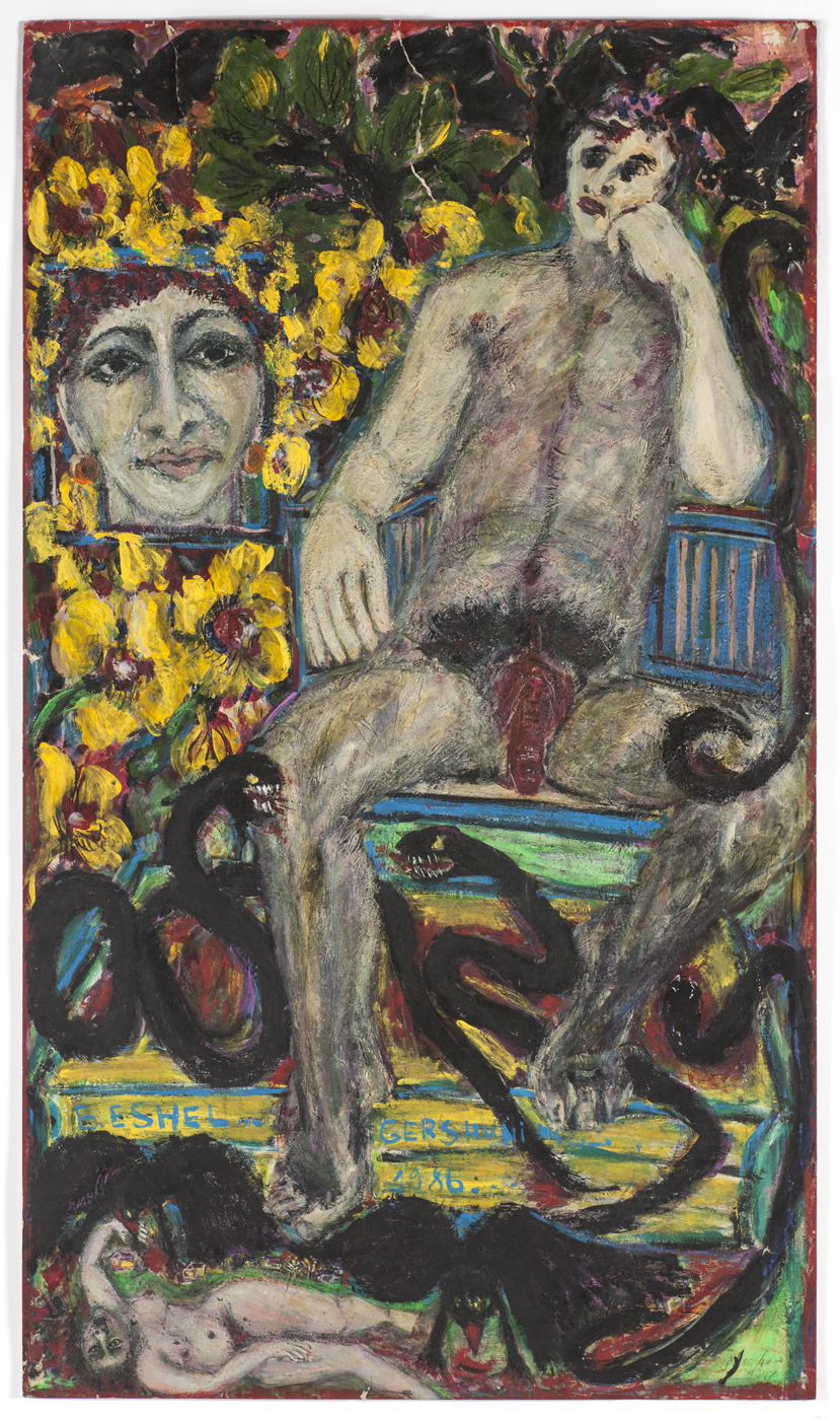 There are numerous issues here about reading art and about Bianca Eshel-Gershuni’s place in Israeli art. Is there a fundamental difference between her oeuvre and others,’ such as Philip Rantzer’s works? Should we be re-thinking about the place of artists such as Dan Ben Amotz or Batya Apollo? What happened to the late Israeli bitter surrealism? It is interesting to observe these works not only in the context of Frida Kahlo, an association raised frequently, but also in the context of marginalized women artists such as Afia Zecharia who painted her entire home in Shlomi and created unforgettable installations of dolls using materials very similar to Eshel-Gershuni’s.