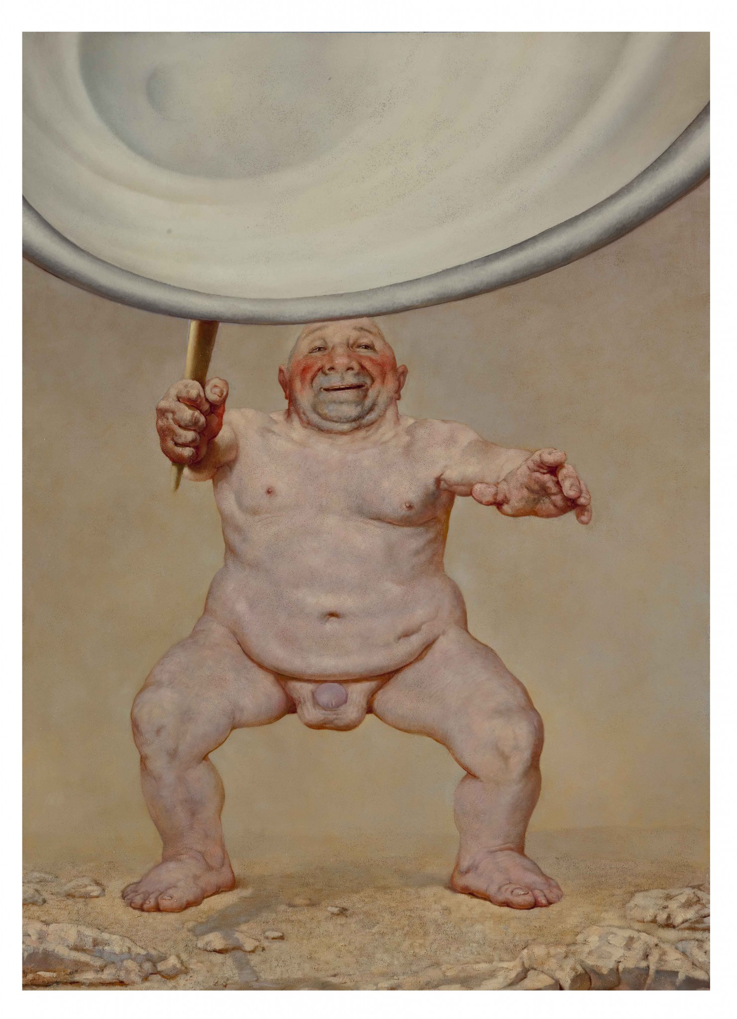 The 12 new works created over the past two years present viewers with a truly operatic drama. These large works, many about three meters wide, all contain figures in extreme situations of conflict, lust, riotous behavior, violence, scenes of pathos and humiliation. A substantial portion of the figures are in extreme contrapposto or are taking huge leaps, with grotesque movements of vitality reminiscent of scenes of the Last Judgment in churches or Israeli playwright Hanoch Levin’s pathetic, battered, but always cruel onstage characters.