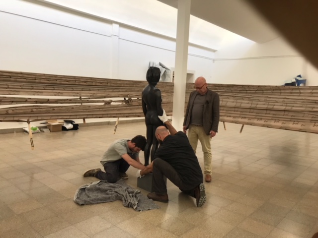 Metzel depicts the difficulties and the absurdities of the present around a nude, silent Muslim woman The exhibition hall is charged with high tension, and one may think of the batons as beating the drums of the next war.