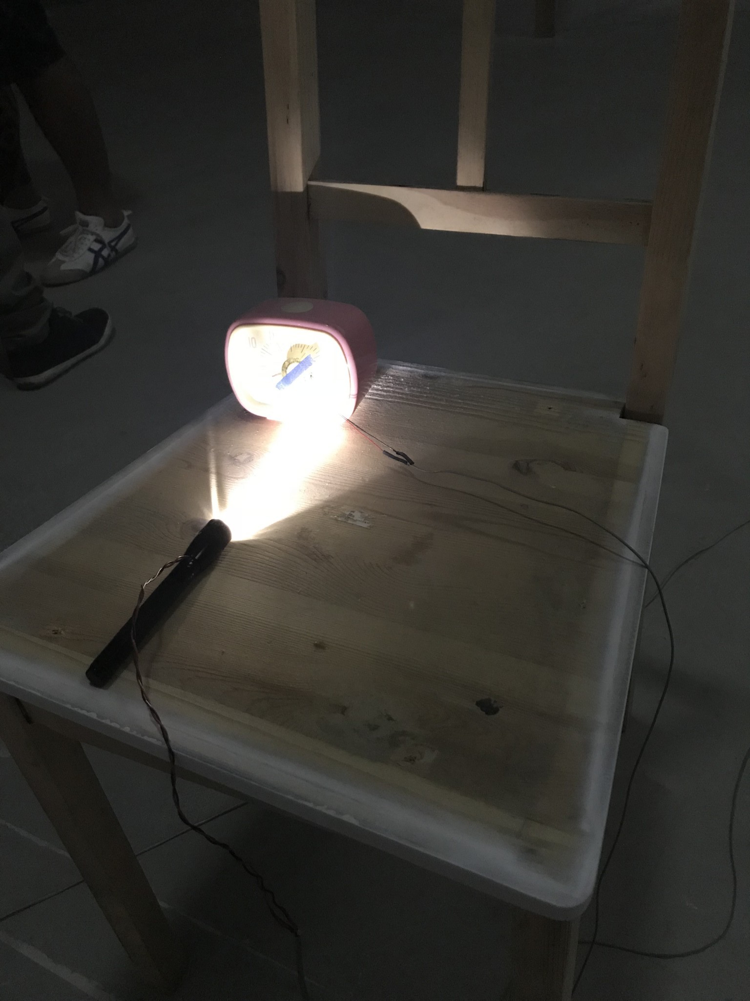 הקולות, הסתומים, חסרי המילים שבתערוכה הם המוטיב החוזר בחלל שהקונסיסטנטיות שלו היא של חד פעמיות סדרתית, שנראה כמו רגע התפוצצות שקפא. מסלול ההליכה בתערוכה שתוי ומתנודד. בצל יבבות נוגות או תיפוף, הצופים מחפשים מקום לעצמם. אפלוליות התערוכה מבטיחה לגלות סוד אך ככל ששוהים בה יותר מתברר שהרפז וחזן מנכיחים מצבים, צלילים ועצמים מוכרים ומודחקים . שוב ושוב מתעוררים חפצים, מקיימים דיאלוג בינם לבין עצמם כך שגם סימבוליקה בסיסית כמו זמן ומוות בשעון מעורר או כיסא שפניו לקיר כמו פינת הענשה, הופכת חמקמקה.