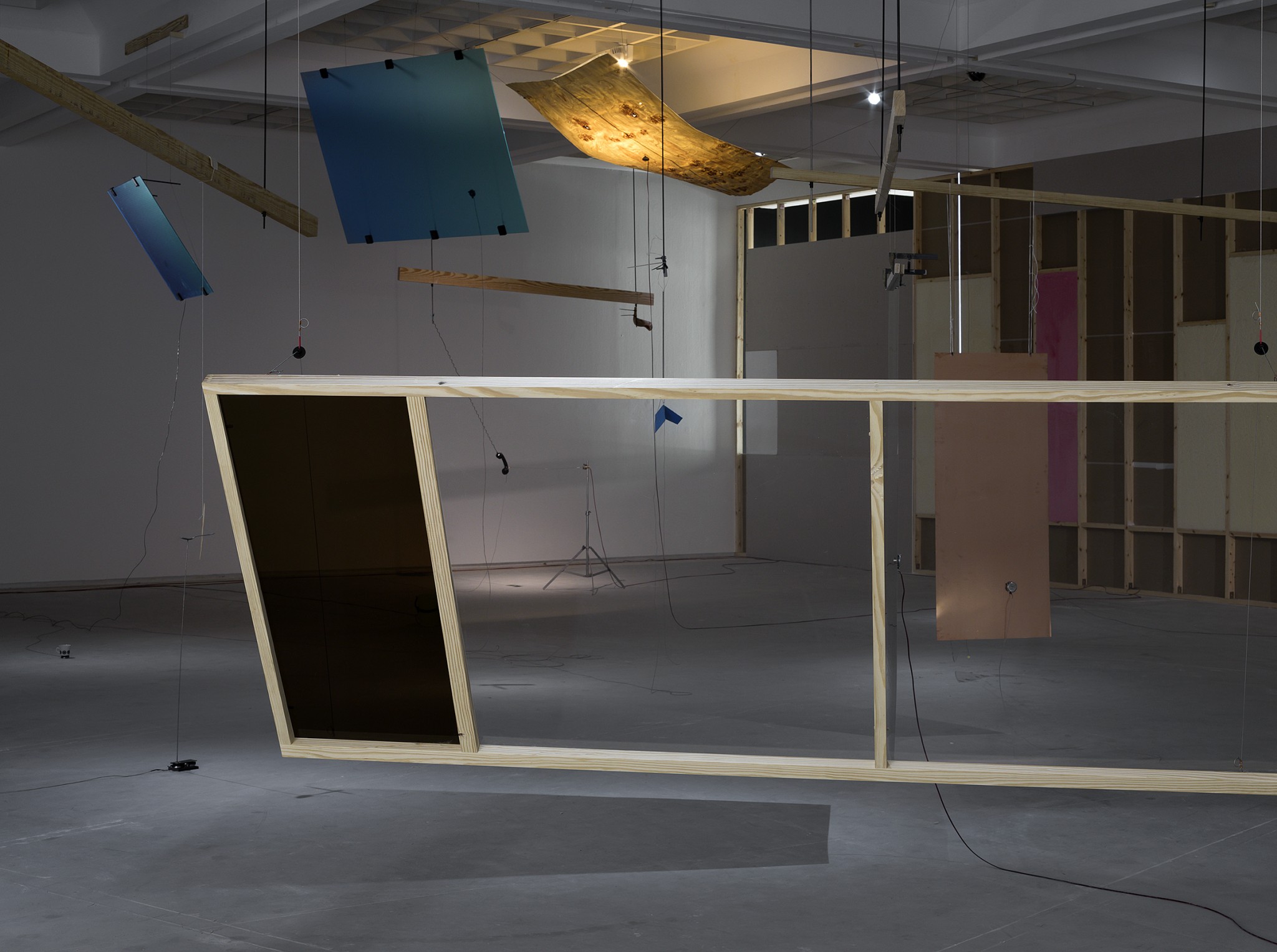 The wordless, mysterious sounds in the exhibition form a repeated motif in the space which consists of a series of one-time happenings like a moment from a frozen explosion.