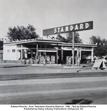 אנגלס.הוא צילם אותן בתמונות חטף שהדגישו את החספוס, את היותן ביטוי מזוקק של תרבות המכוניות האמריקאית. הספר הקטן שהופק באמצעי הדפסה משרדיים פשוטים נחשב למסמן חשוב של הערפול שבין הדוקומנטרי לאמנותי. ב-1963 צייר רושה את Standard Station, Amarillo, Texas, עבודה גדולה, רוחבה מעל 3 מטרים, שהפכה לעבודה איקונית של פופ.רושה הפנה את המבט לתאגידי הענק, לכוחות מרכזים בחברה האמריקאית.