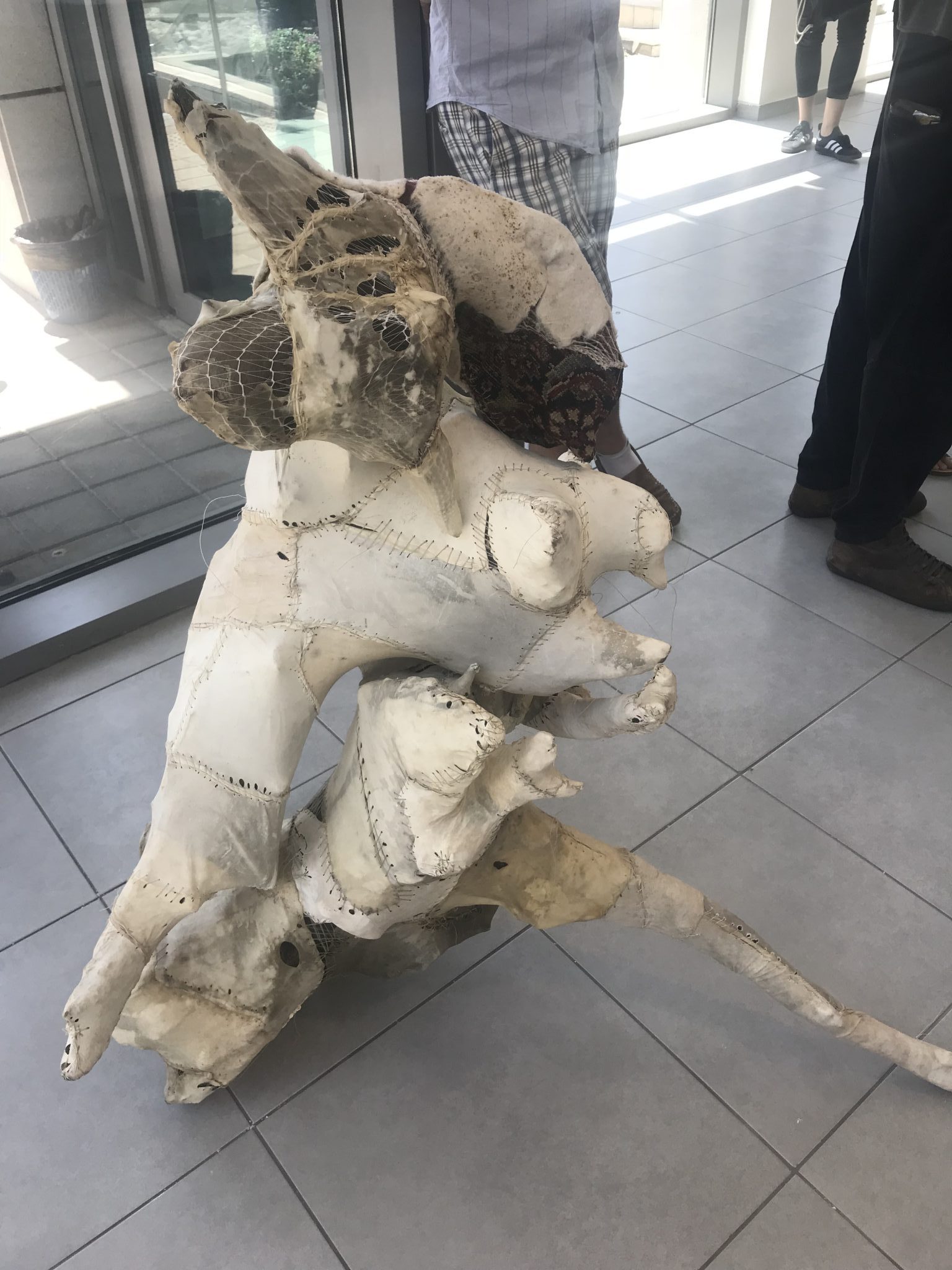 בקומה השנייה תלויה מעין חליפת הגנה מסיליקון שהתרוקנה מגוף והיא מוצלחת פחות. חסין התחילה לבדוק אופציות של פירוק והזרה והרחבה של הגוף (כיסא הגלגלים, כמו פרוטזה הוא המשך /תחליף גוף), מסע לשאלות של היחס בין הטבעי למלאכותי שיכול להמשיך ולהתפתח.