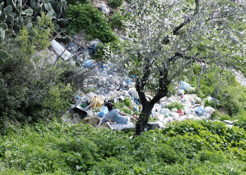 The two works in another medium – photography – are by two artists from minority communities, one photograph is by artist Amira Ziyan, a Druse, the other is by Esti Almo Wexler, from the Ethiopian community. Ziyan’s beautiful work depicts an encounter between a flowering almond tree and a refuse heap with a woman in the center, her back to the camera. The reference to the image of the Odalisque – the Eastern woman as imagined by the Orientalist European- is ironic and clear.