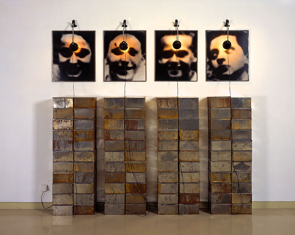 “Lifetime” concentrates on the series that turned Boltanski into a popular, consensual artist. In the piece Altarpiece to the Chases [Chajes] High School, 1987, he commemorates specific people while creating an abstraction of memory. He enlarged four faces from a 1931 yearbook picture of students of the Zwi Perez Chajes Schule in Vienna, who were most probably murdered about one decade later. With the dim lighting and their blurred expressions, the faces join the visual consciousness of the long list of martyrs in history: their oblivion is embodied in their memory, and erases the uniqueness perceived as differentiating between the Holocaust of Jewry and other genocides. This , and some other works, makes one aware of Boltanski’s influence on contemporary Israeli Art.